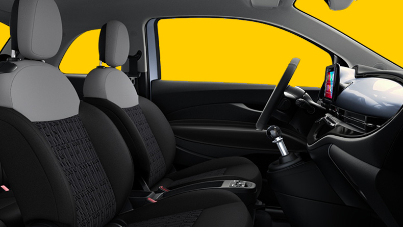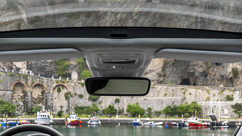 Laat de wereld binnen via het glazen dak en vul jouw Fiat 500 Hybrid met natuurlijk licht en een vleugje stijl bij elke rit.