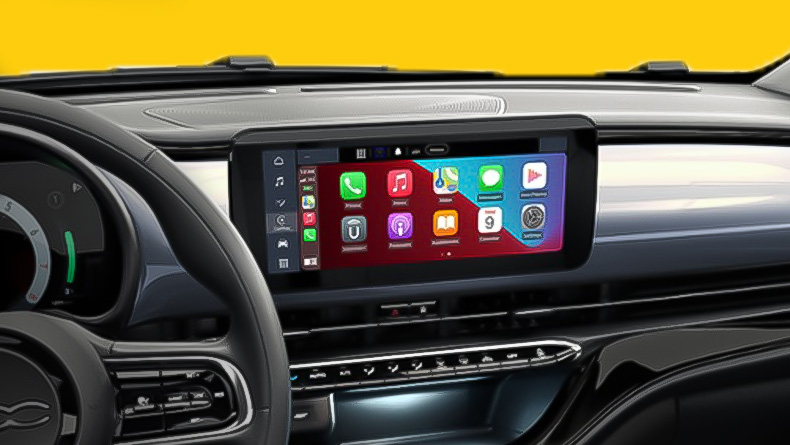 De Fiat 500 Hybrid werkt perfect samen met Apple CarPlay™. Verbind je iPhone met het Uconnect™ 10,25-inch display en bedien Apple CarPlay draadloos via Siri-spraakbesturing of het touchscreen. Draadloos Apple CarPlay is de slimme, veilige manier om je iPhone in de auto te gebruiken. Zo kun je routes opvragen, bellen, berichten versturen en ontvangen, en luisteren naar Apple Music, audioboeken of podcasts terwijl jij je aandacht op de weg houdt.