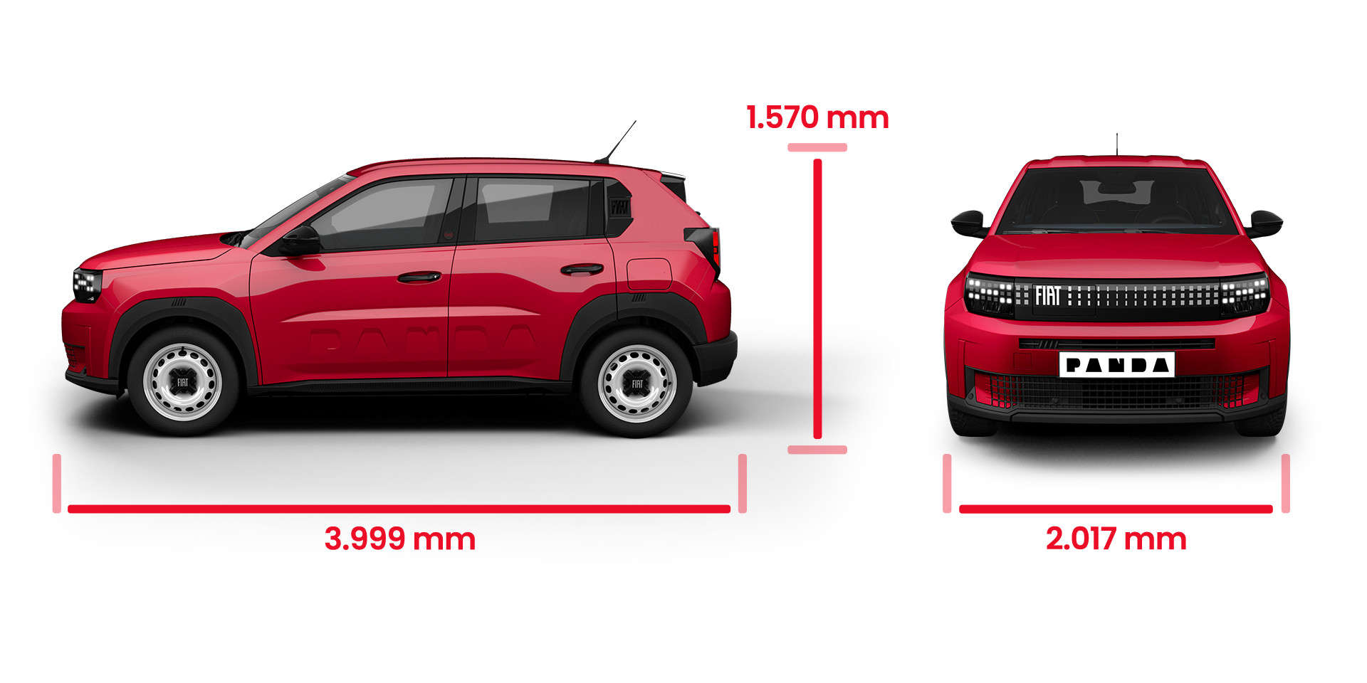 | 2017 mm (met spiegels) | 3999 mm | 1570 mm (zonder antenne) | 361L |