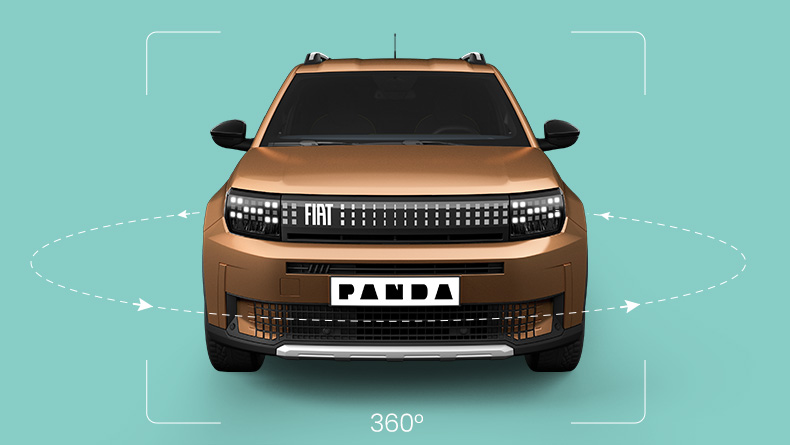 Bewonder de Grande Panda Pop, Icon en La Prima van alle kanten met de 360°-weergave. Draai de auto rond en ontdek alle verfijnde details van buiten en van binnen.